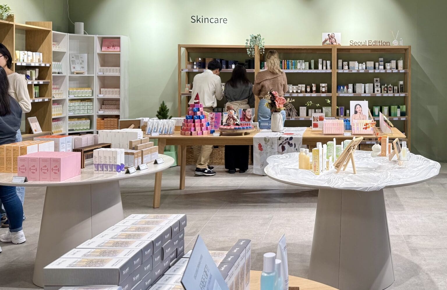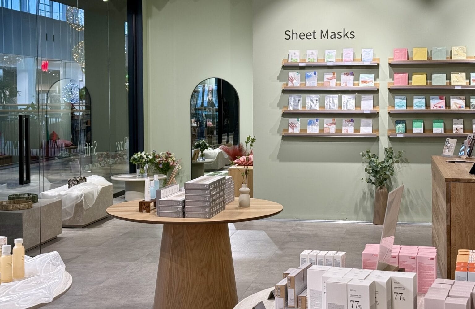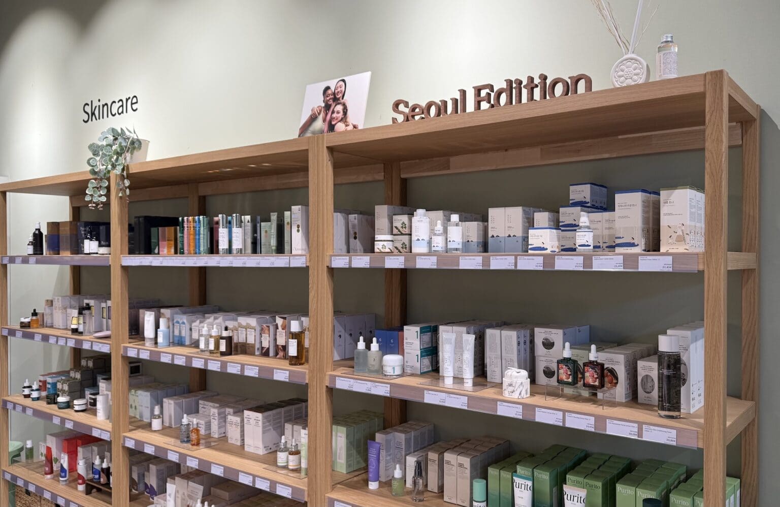 The store presents a carefully selected range of innovative K-beauty products, combining trend-driven skincare with a contemporary beauty experience.